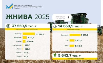Україна зібрала вже майже 38 млн тонн зернових та зернобобових та 15 млн тонн олійних культур