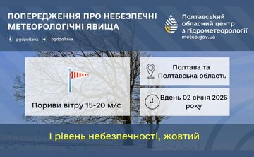 На Полтавщині у п’ятницю слід остерігатися небезпечних метеорологічних явищ.