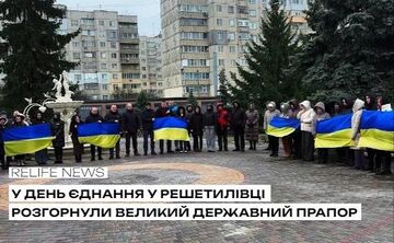 У День Єднання у Решетилівці розгорнули великий державний прапор