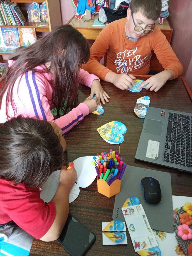 «Діти переглянули цікаве відео про козаків, про побут, та звичаї, про любов козаків до своєї Батьківщини. Також підписали листівку-подяку нашим воїнам захисникам», — підсумовують у книгозбірні.