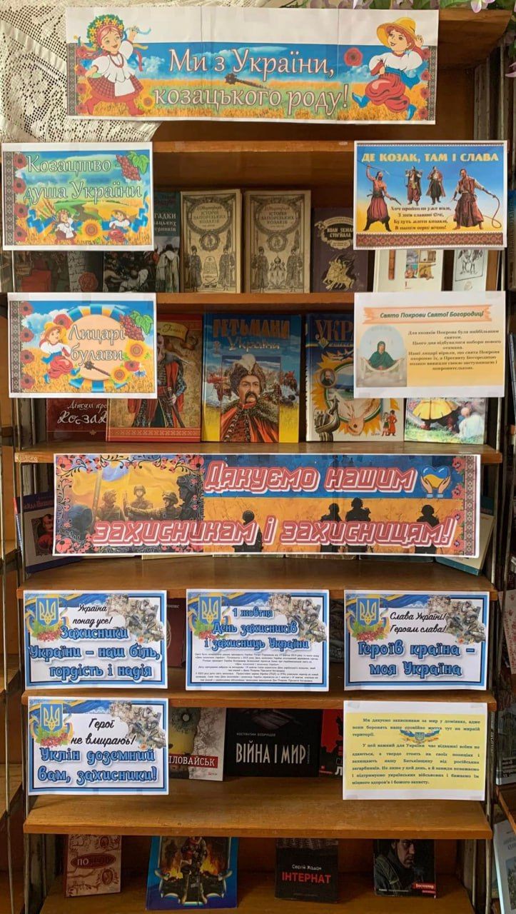В цей день у книгозбірнях Решетилівської громади презентували тематичні книжкові виставки. Зокрема, у читальному залі Решетилівської ЦМБ ім. О.М.Дмитренка організували книжково-ілюстративну виставку «Свята Покрово, збережи Захисників!». На виставці експонуються книги, що дозволять читачам поринути в атмосферу славних героїчних часів козацької доби.