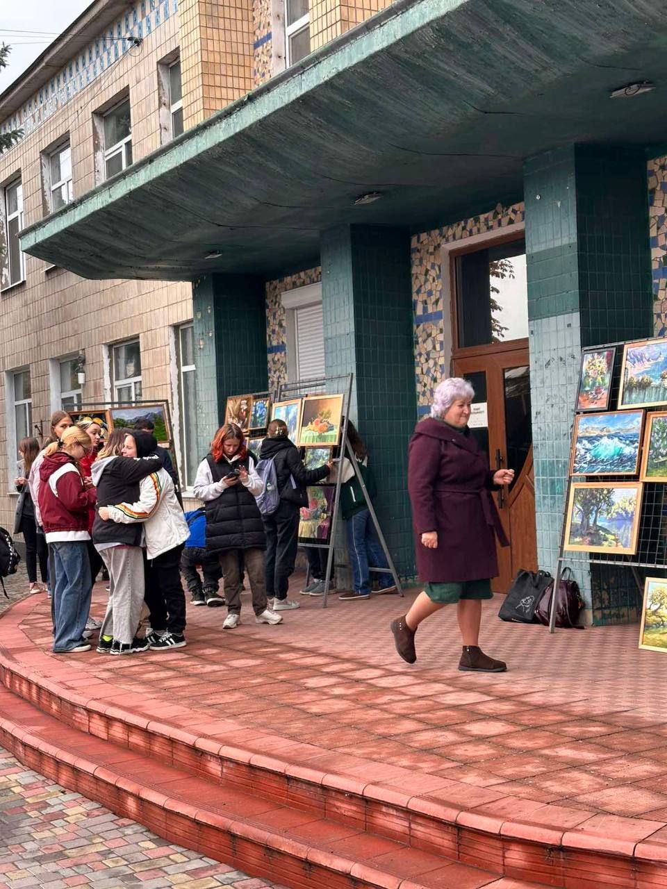 Учора ґанок міського Будинку культури перетворився на справжню картинну галерею просто неба. Роботи учнів Решетилівського художнього ліцею зачаровували перехожих — люди зупинялися, щоб розгледіти кожен мазок пензля, кожен відтінок барв.