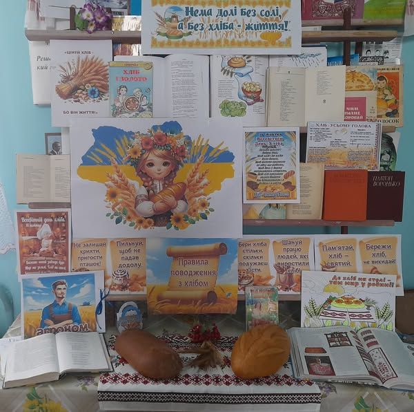 Зокрема, у Новомихайлівській сільській бібліотеці-філії оформлено тематичну поличку «Цінуймо хліб, бо він — життя!». На виставці представлені вірші, що написані українськими поетами, які оспівують красу та велич хліба.