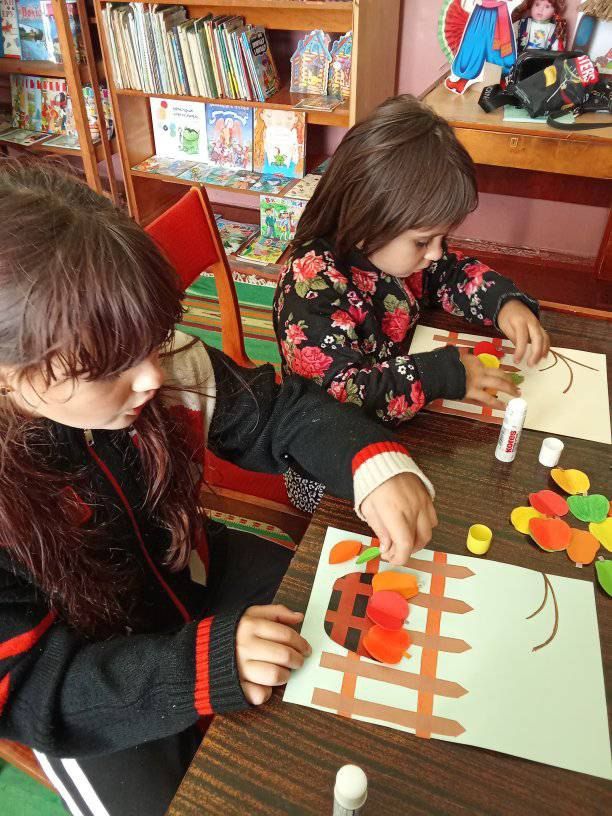 «Осінь — чудова пора року, яка дарує природі яскраве вбрання. Дівчатка створили чудову та яскраву осінню аплікацію з кольорового паперу», — підсумували у книгозбірні.