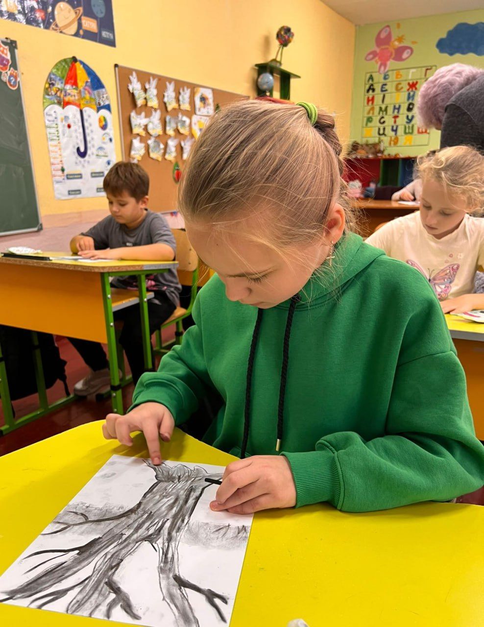 «Малювання вугіллям — це не тільки гарно та незвичайно, але й дуже цікаво, як арт-терапія. Щиро дякуємо за цікаво проведений час», — підсумували у навчальному закладі.