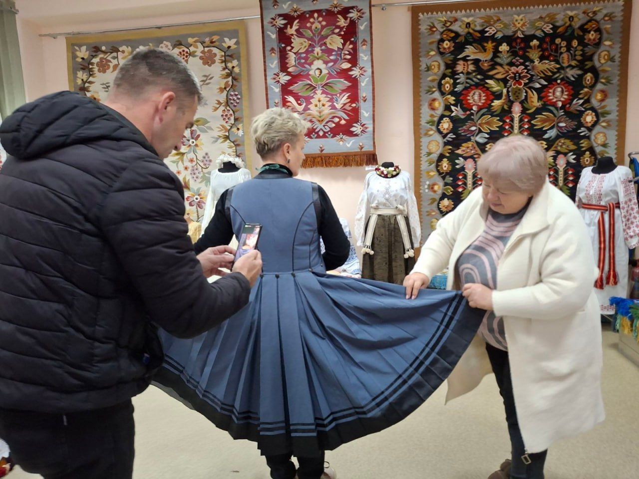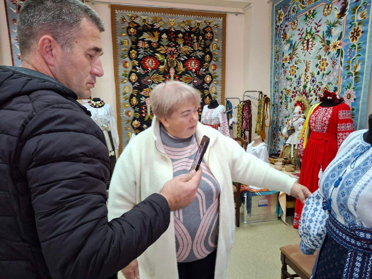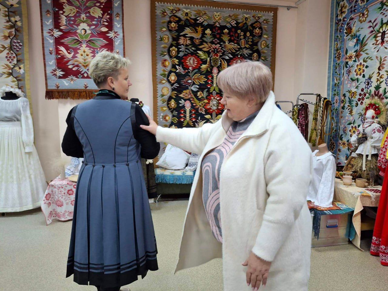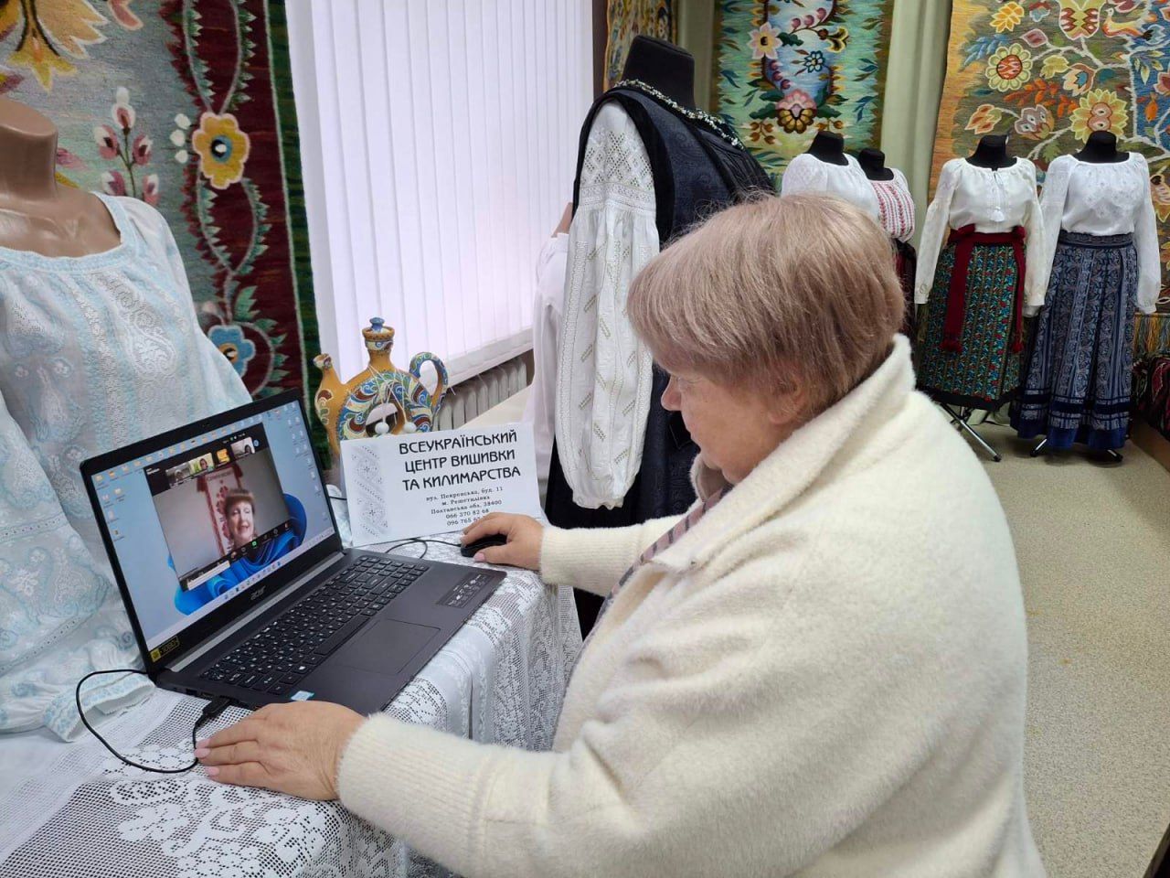 Учасники цього заходу, із зацікавленням і захопленням поринули у світ вишивки і килимарства ВЦВК, помандрувавши під час онлайн-екскурсії Виставковою залою та майстернями. Їхню увагу привернули рушники «білим по білому», в орнаментах яких — гілки винограду, а також блуза «Яблуневий цвіт» провідного художника Центру Ірини Павлюченко та інші наші дивотвори.