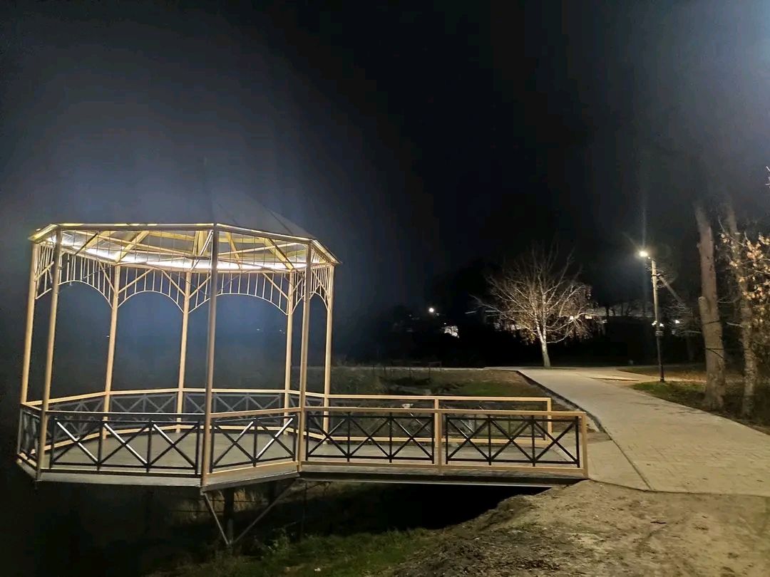 Поблизу спортивного комплексу «Колос» нещодавно встановили освітлення на оновленій альтанці. Тепер у вечірній час вона м’яко підсвічується, створюючи затишну атмосферу над річкою Говтва.