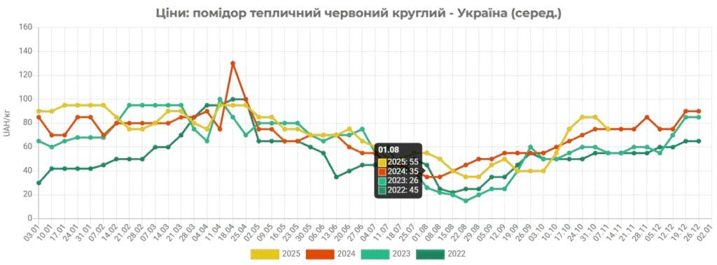 Варто зазначити, що зараз українські тепличні комбінати відвантажують томати фактично за цінами торішнього періоду.