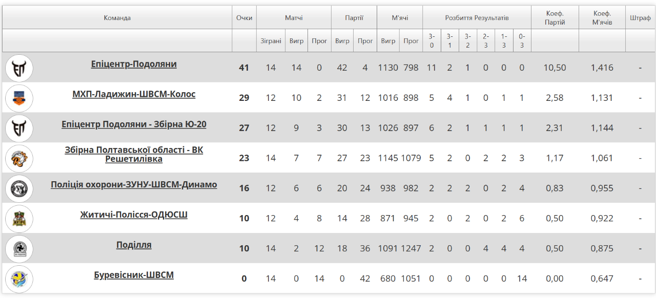 Після останнього туру ВК «Решетилівка» знаходиться на 4 місці.