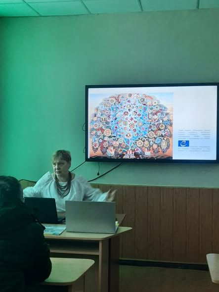 Тема її виступу «Нематеріальна культурна спадщина України — складова національної ідентичності. НКС в проєктній діяльності учнівства» зацікавила учасників заходу, тож вони із захопленням переглядали світлини робіт майстрів нашого Центру.