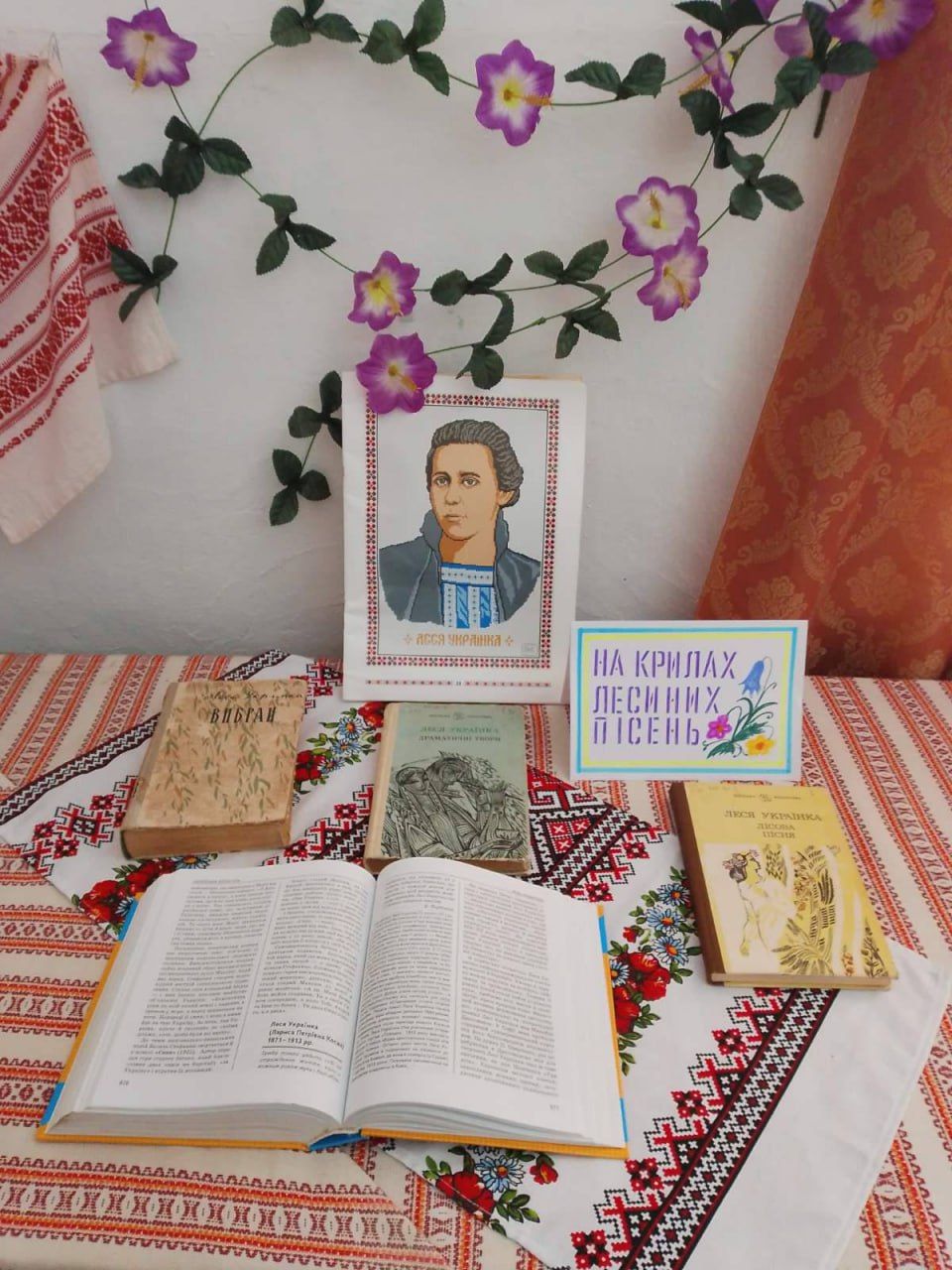 У Остап’євській сільській бібліотеці-філії створено книжкову виставку «Вогонь її слова освітлює шлях крізь епохи». На виставці представлено творчий спадок видатної поетеси і письменниці.