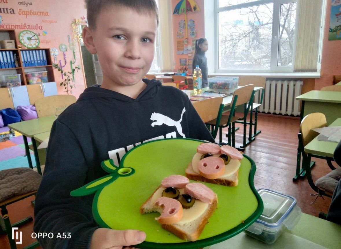 Учні 2-А класу Решетилівської початкової школи в межах інтегрованого курсу «Я досліджую світ» відвідали справжній кулінарний міні-фестиваль «Веселий бутерброд». Діти перетворювали канапки на веселих звірят, сонечок та мультяшних героїв: Спанч Боба, Сквер Вера, кумедне поросятко.