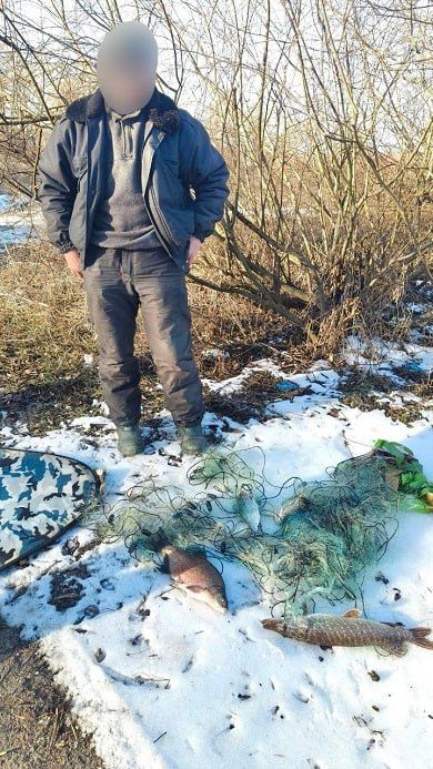 Учора, 5 березня, о 5.30 державні інспектори Полтавського рибоохоронного патруля на Кам’янському водосховищі в межах Регіонального Ландшафтного парку «Кременчуцькі Плавні» біля Кременчука помітили двох горе-рибалок. Ті займалися незаконним виловом риби забороненими знаряддями — ловили двома сітками з-під криги.