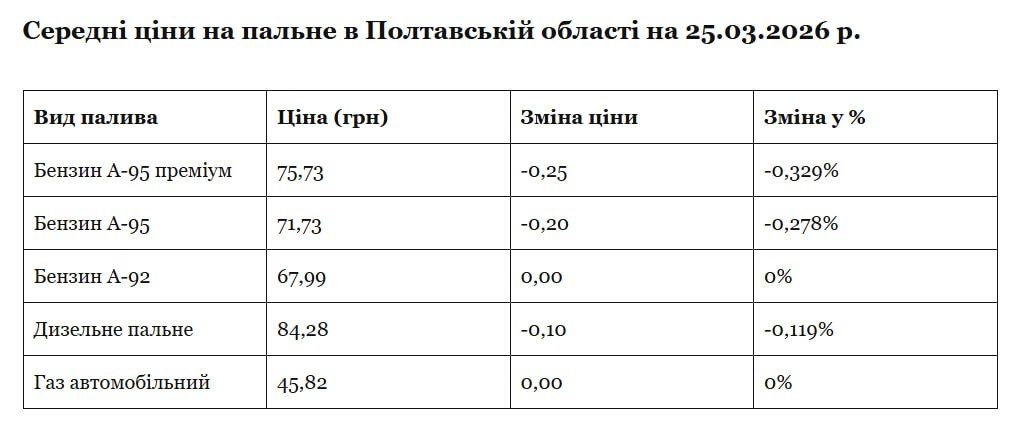 Варто зазначити, що середні ціни на пальне на АЗС Полтавської області та по операторах ринку є середньозваженими і наводяться за даними «Мінфіну». Проте, у деяких операторів ціни на різних АЗС можуть встановлюватися індивідуально, і, як наслідок, відрізнятися від цін, вказаних на сайті.