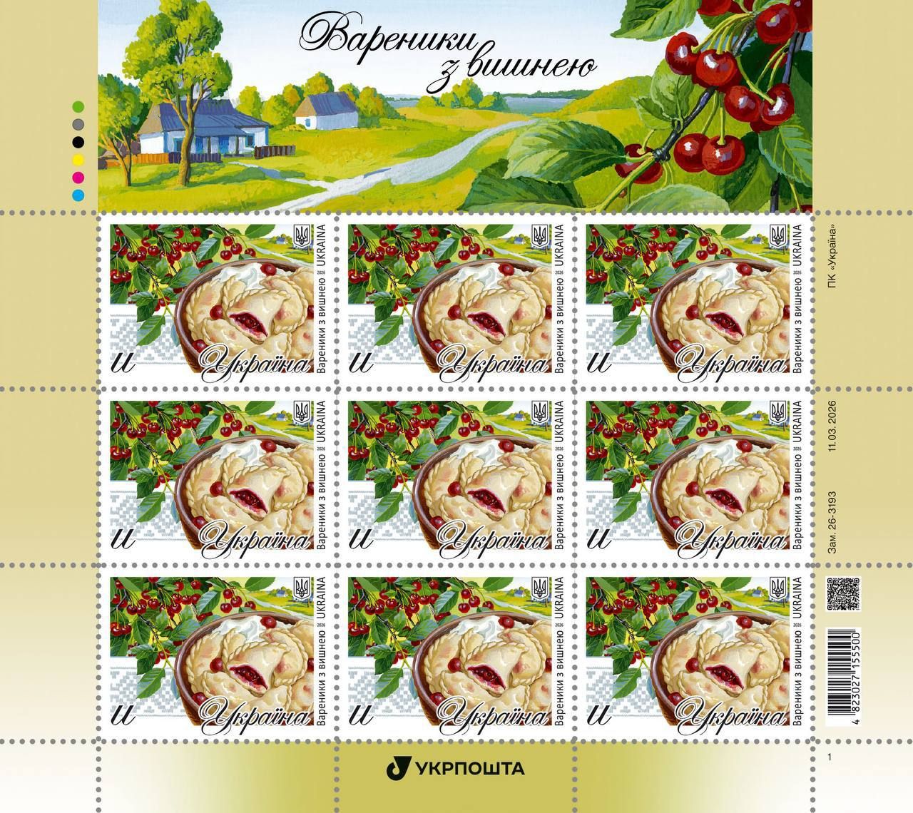 Укрпошта ввела в обіг поштову марку «Вареники з вишнею» — новий випуск із серії «Національні страви», що популяризує гастрономічні символи України у світі.