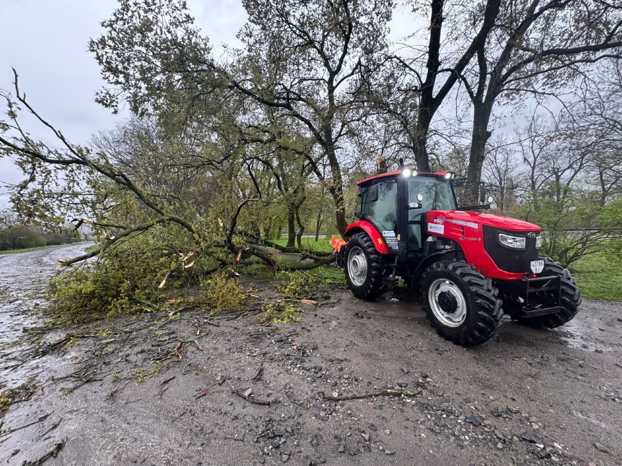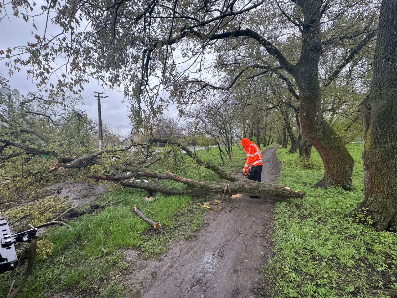«З перших годин було організовано роботи з ліквідації наслідків: розчищення дороги, прибирання поваленого дерева та гілля. До виконання робіт залучено спеціалізовану техніку та працівників підприємства. Роботи тривали у посиленому режимі, аби якнайшвидше відновити безпечний проїзд», — повідомили у підприємстві.